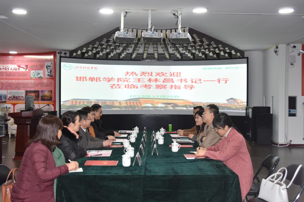 12月20日下午,邯郸学院党委副书记王林昌一行6人来我校进行思想政治理论课实践教学模式和平台建设考察交流。交流座谈会在马克思主义学院国情国史体验馆举行,校党委副书记杨松璋出席会议,党委宣传部负责人及马克思主义学院教师代表参加了座谈。