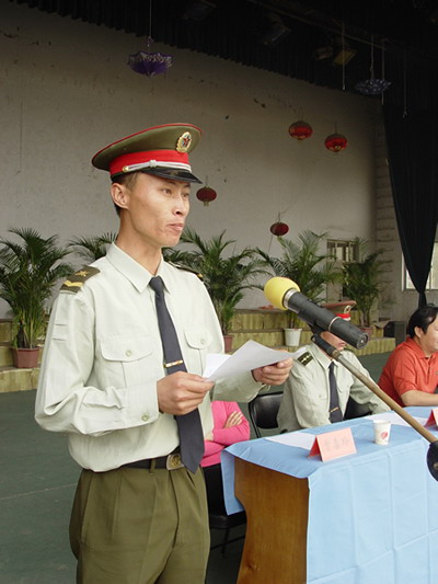 资源与环境学院的郑苏丹同学和教官胡庆猛分别代表2006级全体新生和参训教官在会上宣读了决心书。