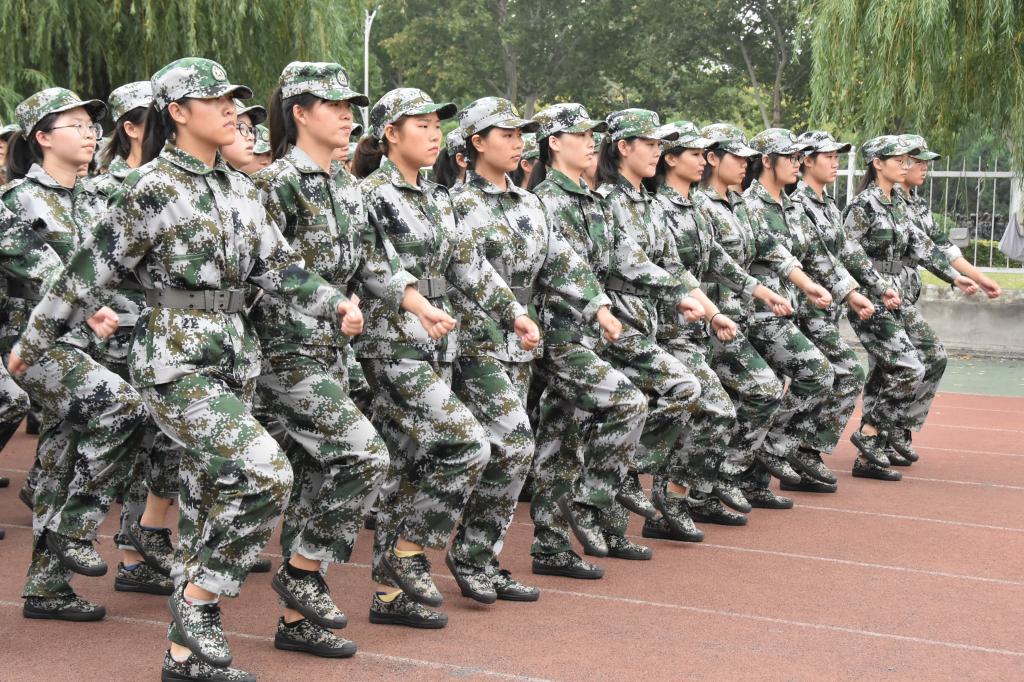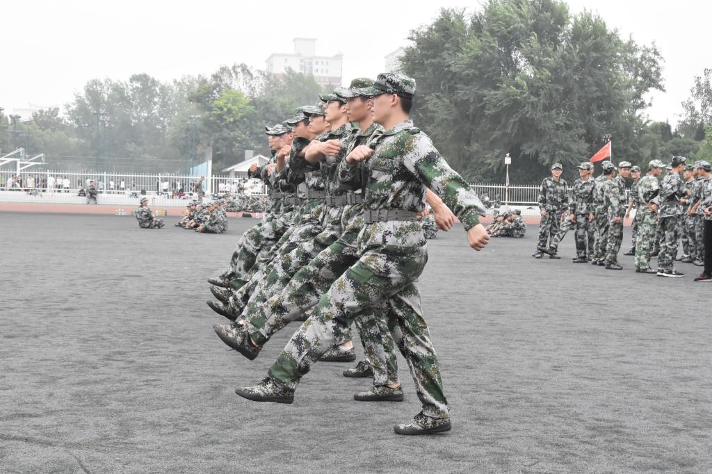 9月17日,细雨蒙蒙,校园内大一新生正在冒雨进行军训,他们不惧风雨、顽强拼搏,尽管天气恶劣,但是他们却精神抖擞,以饱满的热情、一丝不苟的精神参与到了各个项目训练当中。教官们手把手教,学生们认真的学,在短短几天内,齐步走、正步走、敬礼及军拳训练项目已初见成效。整齐的列队,嘹亮的口号,有力的步伐,成了校园内一道亮丽的风景线,处处张扬着青春与活力。