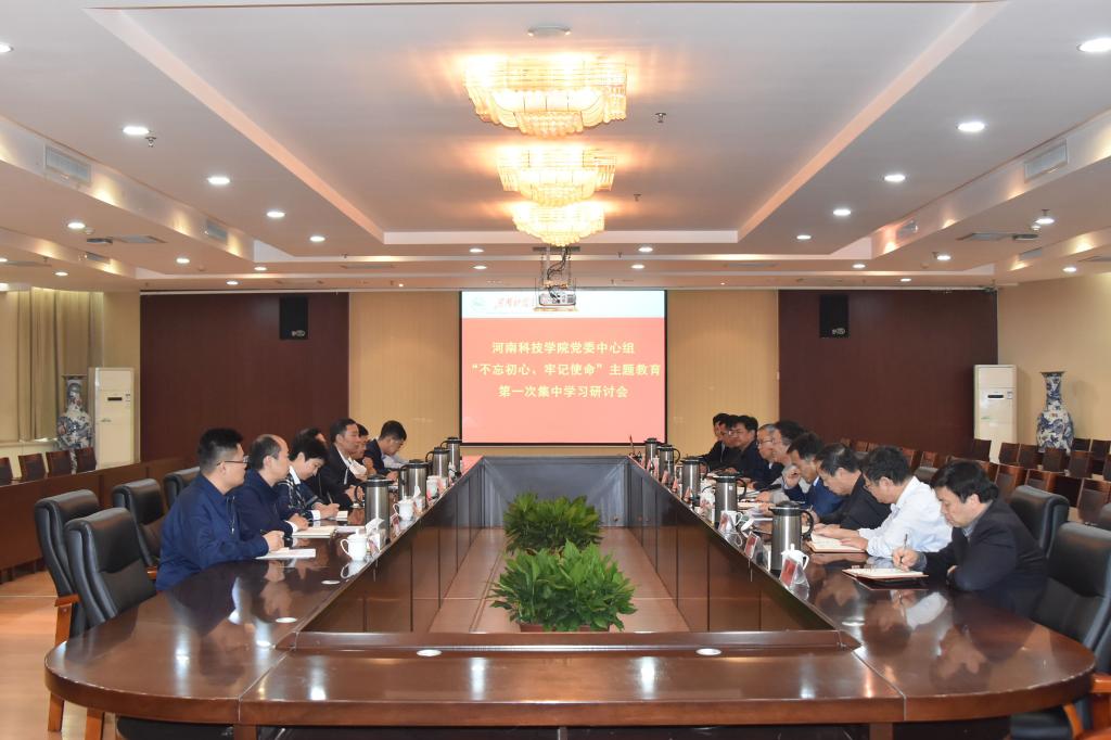 9月19日下午,校党委理论学习中心组在行政楼206会议室举行“不忘初心、牢记使命”主题教育第一次集中学习研讨会。省委第十二巡回指导组组长、河南农业大学原党委书记程传兴,省委第十二巡回指导组副组长、省有色金属地质矿产局副巡视员张心剑及省委第十二巡回指导组成员赵艳丽、王凯、郭二斌、朱子帅、杜文龙、王磊出席会议,校党委书记周志远、校长李成伟、党委副书记宋亚伟、副校长苗双虎、纪委书记贺杰、工会主席贾积身及党委办公室、校长办公室、党委组织部、党委宣传部、党委统战部负责人参加了学习研讨。