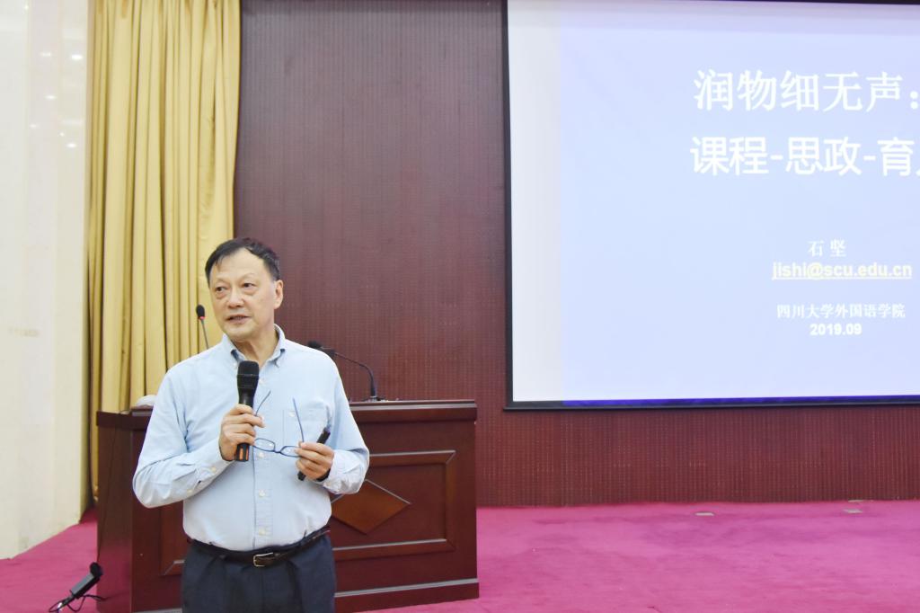 会上,石坚教授从中国特色社会主义进入新时代、我们的初心与使命谈起,在人类未来、中国未来和学生未来发展的视域下,思考“教书与育人”的关系,阐述了课程思政的必然性和必要性,介绍了课程育人的路径与策略,分享了四川大学的实践经验。