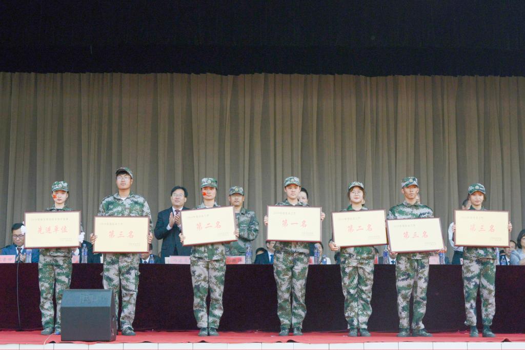 2019级新生军训汇报表演及总结表彰大会在高亢的校歌声中圆满落幕。