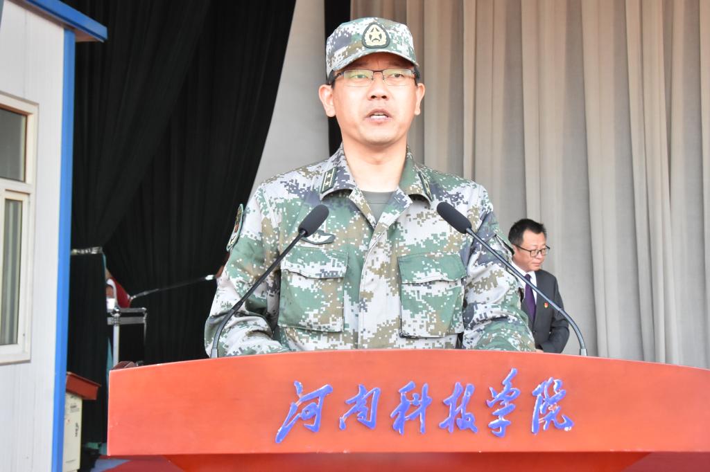 军训团二营七连连长李阳作为全体帮训代表发言,希望同学们继续严格要求自己,继承和发扬不怕苦、不怕累、迎难而上的精神,克服困难,努力拼搏,以崭新的精神面貌去迎接繁忙而又充满激情的学习生活。