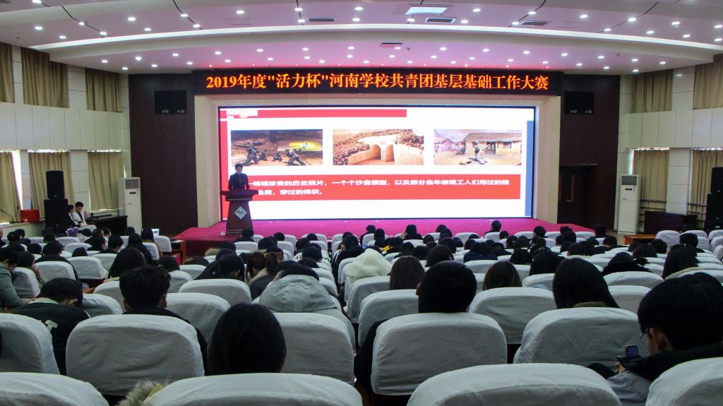 12月18日-19日,由共青团河南省委主办、我校承办的2019年度“活力杯”河南省学校共青团基层基础工作大赛(高校组)在行政楼308报告厅举行。共青团河南省委书记王艺、校党委副书记杨松璋出席优秀作品展示及颁奖仪式,团省委相关部门领导、全省各高校团委书记、获奖选手代表及我校师生代表共计300余人参加。