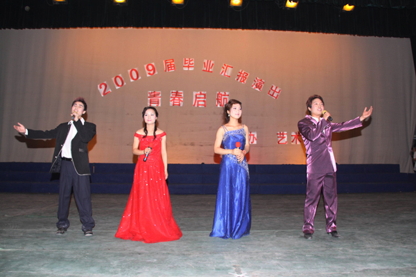 毕业汇演在歌伴舞《相聚中华》中拉开了帷幕,晚会内容丰富,形式多样,包括大合唱、舞蹈、时装表演、独奏、独唱、小合唱、歌曲联唱及钢琴协奏曲等等。节目精彩纷呈、高潮迭起。晚会在大合唱《送别》、《毕业晚会》中落下帷幕,歌声中浓浓的流淌着离别时的依恋不舍之情。