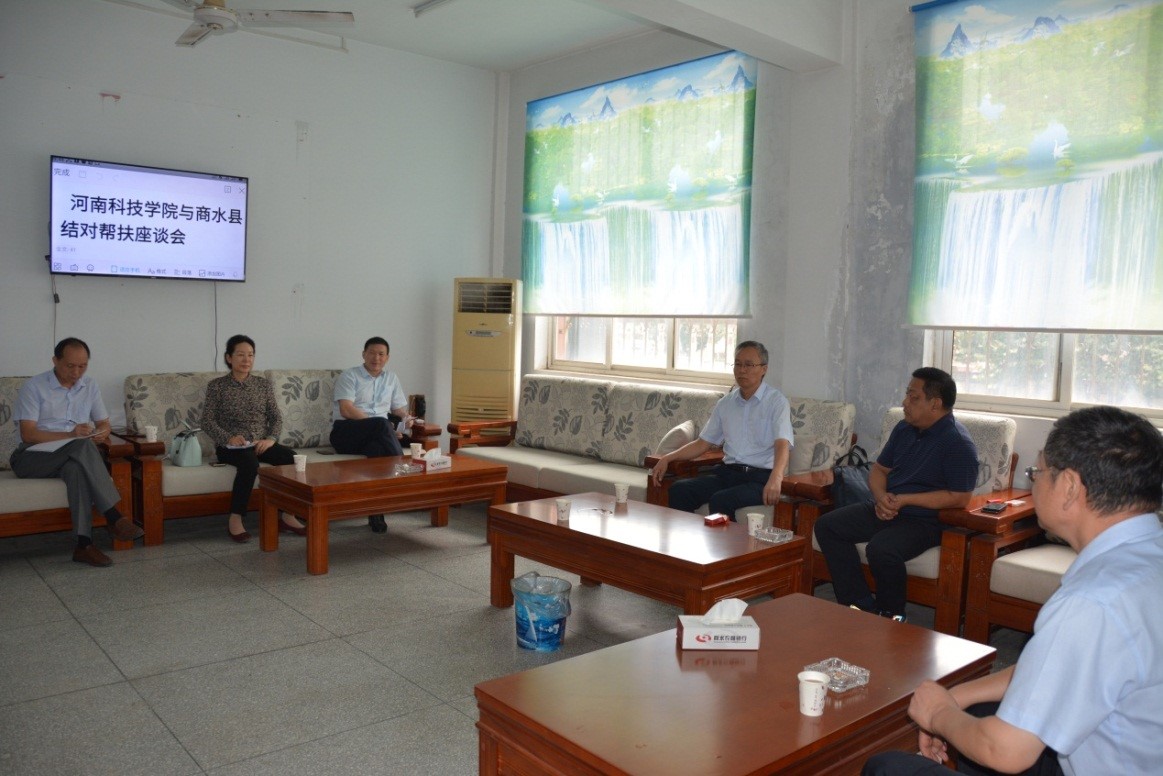 9月17日上午,宋亚伟、贾积身与商水县委常委副县长王勇、副县长张述新一起在商水县委党校会议室举行2020年结对帮扶工作座谈会。会议介绍了商水县脱贫攻坚基本情况和我校与商水县结对帮扶取得的成效,说明了我校结对帮扶的整体情况、目标、任务和实施办法,对智力帮扶、法律咨询服务、高素质农民培育、科技帮扶、小麦玉米示范田建设、科研试验站运行、电子商务指导培训以及粮油、小杂粮、副食品采购等各方面帮扶情况进行了详细说明。