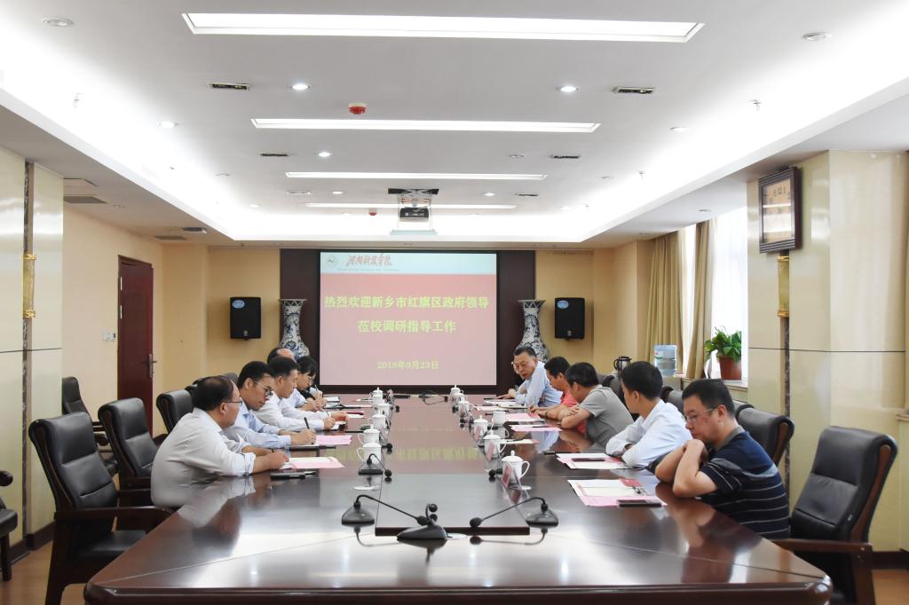 9月23日下午,新乡市红旗区人民政府刘宏锋区长一行7人莅校考察交流。我校在行政楼901会议室举行交流座谈会。校长李成伟出席会议,校长办公室、科技处等部门负责人参加座谈会。