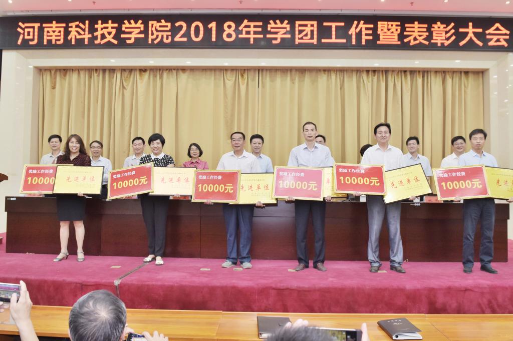 在热烈的掌声中,与会领导为学团工作先进集体和个人代表进行了颁奖。学生工作先进单位代表、经济与管理学院党委副书记张慧辉,河南省五四红旗团委获得者、资源与环境学院团委书记叶晖,就业工作先进单位代表、化学化工学院院长张裕平,全国优秀共青团员、三好学生祁晓岩等人上台做典型发言。