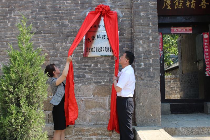 签约仪式举行前,校地双方还在山城区“石林会议”旧址刘伯承、邓小平旧居举行教学实习基地揭牌仪式,何松林、于燕代表合作双方为我校教学实习基地揭牌。