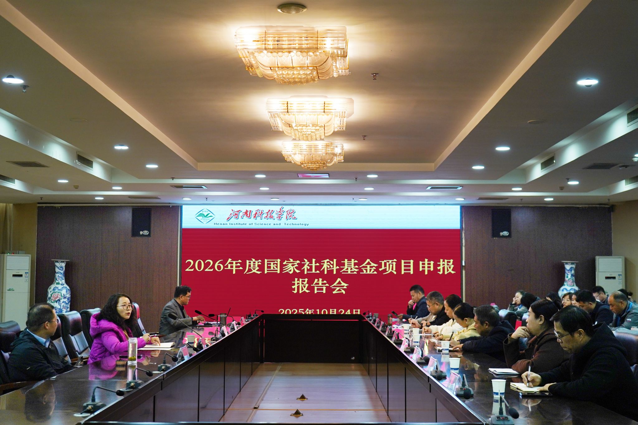 10月24日下午,我校在206会议室举办2026年度国家社科基金项目申报辅导报告,河南师范大学刘英基教授与河南工业大学王君祥教授应邀作报告。副校长丁轲出席会议,各文科学院院长、科研副院长、科研秘书和拟申报国家社科基金项目的老师参会,科技处相关负责人主持会议。