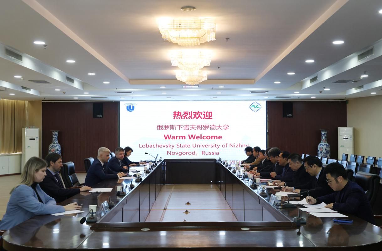 12月3日,俄罗斯下诺夫哥罗德大学校长奥列格·特罗菲莫夫、副校长贝德尼·亚历山大、副校长米哈伊尔·格里亚兹诺夫一行5人应邀到访我校,校长阚云超出席欢迎会并致辞,会议由副书记刘全永主持。相关职能部门及学院负责人参与会议,共同擘画教育合作与人文交流新蓝图。
