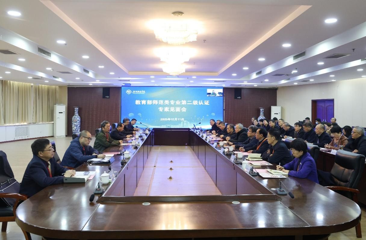 12月11日上午,我校在办公楼206会议室召开美术学师范类专业第二级认证专家进校见面会。认证组组长、湖南师范大学原副校长(正校级)黎大志教授,河南省教育厅教师教育处副处长张会敏,河南省教育评估中心副主任张新民教授,认证组成员熊沁教授、杜旭光教授、冉明远教授、秘书常海敏教授,校领导宋亚伟、阚云超、王庆兵、刘全永、胡铁柱、王洪亮、马金友、王莉华、乐玉忠出席会议。相关职能部门负责人,教育科学学院、美术与设计学院、马克思主义学院相关负责人和教师代表等参加会议。