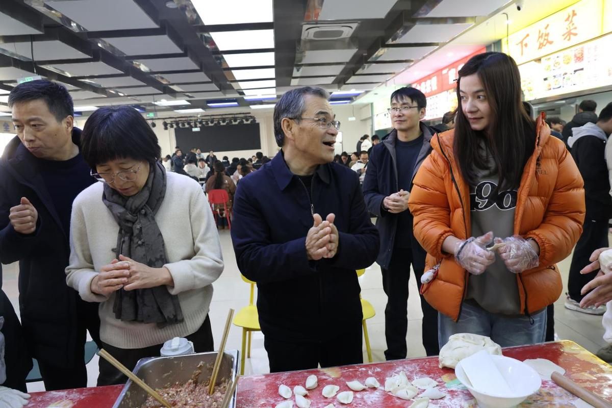 活动现场洋溢着浓厚的节日氛围。王庆兵、王莉华与老师同学们一起包饺子,并与大家亲切交流家乡的冬至习俗。师生们围坐在一起,分工协作,默契配合。大家一起揉面、擀皮、包馅,忙得热火朝天,有的手法娴熟,包出的饺子形如元宝,整齐列队;有的初次尝试,在大家的帮助下渐入佳境,创造出造型各异的“创意饺子”。在大家的共同努力下,一盘盘独具特色的饺子很快制作完成。师生们围坐在一起品尝自己亲手包的饺子,围绕节日习俗、校园生活、成长感悟等话题畅所欲言,现场气氛温馨热闹。