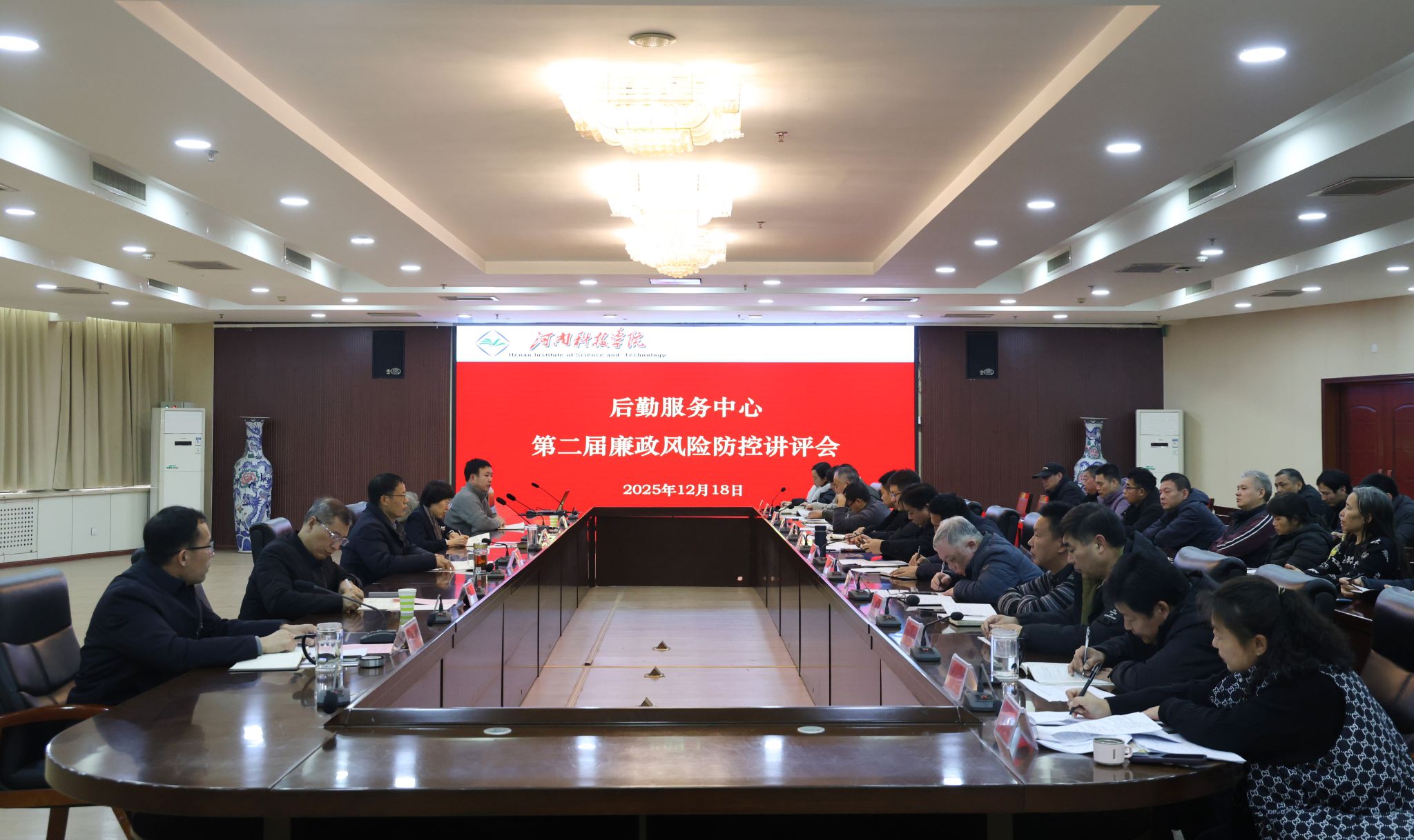 为深入贯彻落实全面从严治党要求,扎实推进后勤领域党风廉政建设,切实筑牢廉政风险防控防线,12月18日下午,我校后勤服务中心在行政楼206会议室召开第二届廉政风险防控讲评会。副校长王洪亮,校纪委书记、监察专员王莉华出席会议,校纪委有关同志、后勤服务中心全体处科级干部参加了会议。会议由后勤服务中心党委负责同志主持。