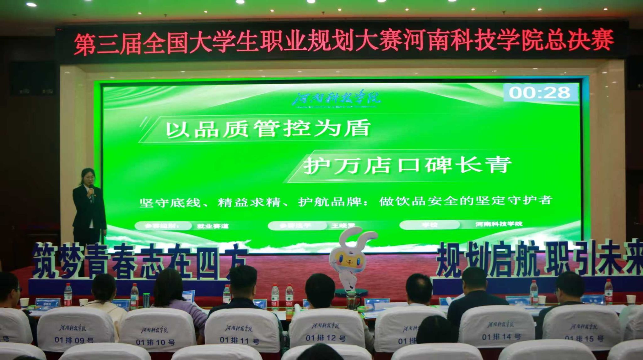 为全面提升学生职业规划意识与就业核心竞争力,12月25日,第三届全国大学生职业规划大赛河南科技学院校赛决赛在校办公楼308报告厅顺利举行。校党委副书记刘全永出席并致辞,校团委、教务处、学生处(就业创业指导中心)、研究生处、国际交流与合作处、经济与管理学院以及食品学院等负责人参加,各学院、书院师生代表300余人观摩。本次赛事特别邀请河南师范大学、河南工学院、新乡学院、新乡工程学院的专家,以及牧原集团、新乡大学科技园有限公司、今麦郎饮品的相关负责人担任评委。