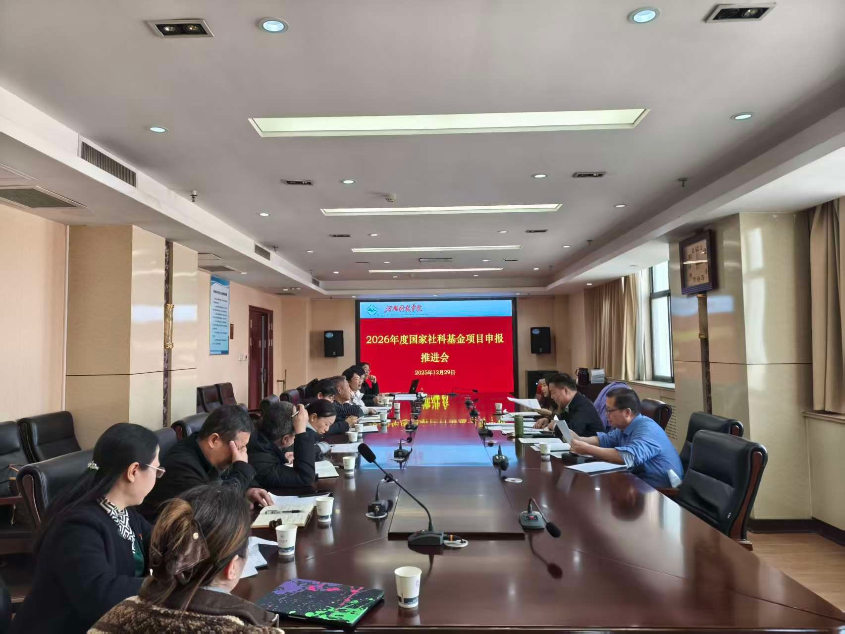 会议强调,国家社科基金项目申报是学校科研工作的重要任务,各学院要高度重视、密切配合,确保2026年度申报工作有序推进、取得实效。