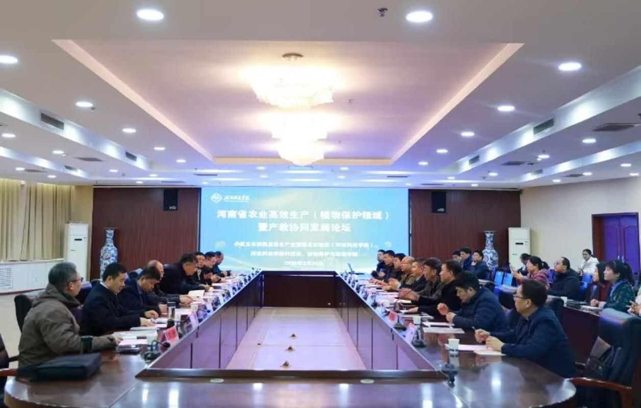 2月26日,由河南省农业农村厅农药管理处与河南省植物保护检疫站联合主办,小麦玉米两熟高效生产全国重点实验室(河南科技学院)承办,河南科技学院科技处、实验室与设备管理处、植物保护与环境学院协办的河南省农业高效生产(植物保护领域)暨产教协同发展论坛在我校行政楼206会议室举行。河南省植物保护检疫站站长张国彦、河南省农业农村厅农药管理处副处长史清学、西北农林科技大学植物保护学院教授冯浩、安阳市植物保护检疫站站长王朝阳、新乡市种业发展服务中心副主任张大明、濮阳市植物保护检疫站站长柴宏飞、商丘市农业农村局植保科副科长张军勇、河南瀚斯作物保护有限公司董事长申艳林、河南喜夫农生物科技有限公司董事长张东海及河南金田地农化有限责任公司总经理王佳等10余个单位的领导、专家和企业家出席会议。我校副校长胡铁柱、实验室与设备管理处、科技处、植物保护与环境学院负责人及教师代表50余人参加会议。