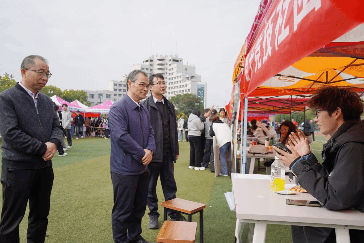 为推进校园文化建设,充分发挥学生社团育人功能,促进学生社团健康发展,10月18日,我校在西操场举办2025年社团文化节暨社团招新活动。本次活动以“聚百社之力,赴青春之约”为主题,共吸引文化体育类、学术科技类、志愿公益类、创新创业类等60余个学生社团集中布展、各展风采。校党委副书记王庆兵亲临现场指导,党委宣传部、校团委等部门负责人共同参加。