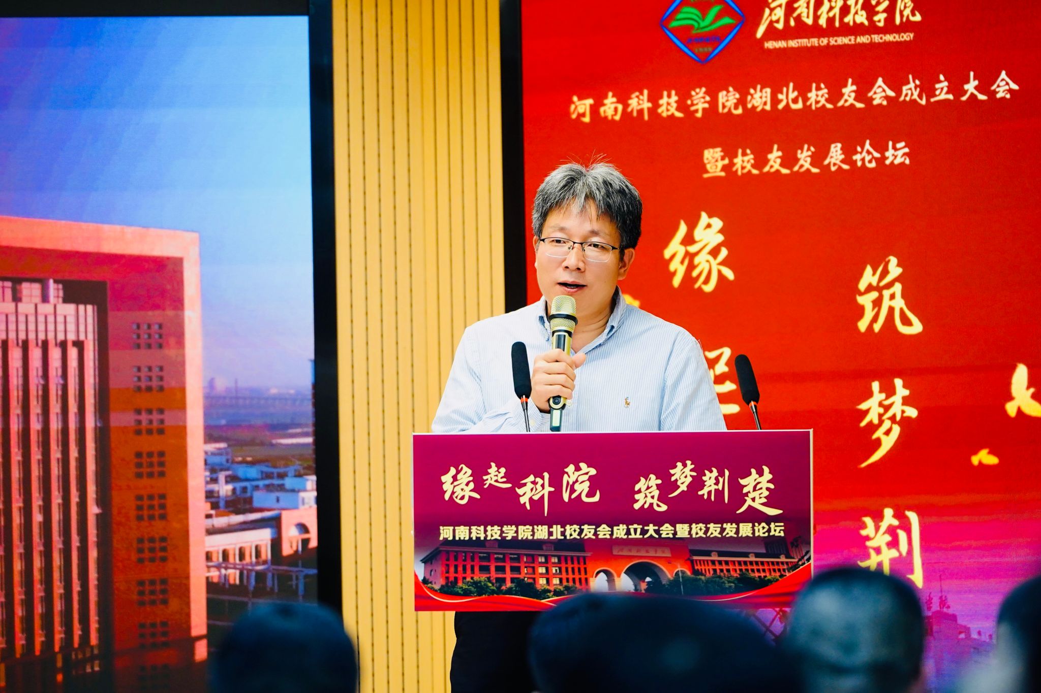 缘起科院,筑梦荆楚。10月18日下午,河南科技学院湖北校友会成立大会暨校友发展论坛在武汉举行。校长阚云超出席大会并致辞,北京、上海、新乡校友会代表及在鄂校友代表、学校相关部门负责人等齐聚一堂,共忆青春岁月,共话使命担当,共绘发展蓝图。