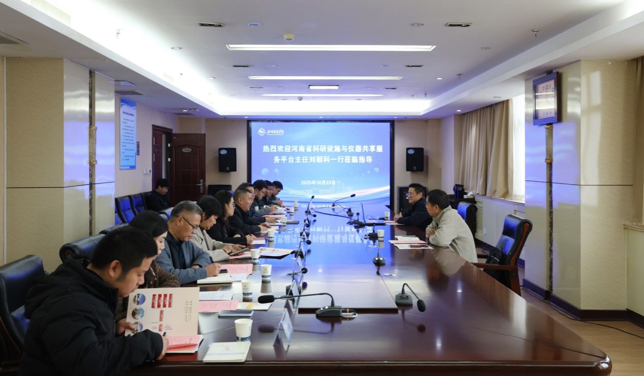 10月23日下午,河南省科研设施与仪器共享服务平台主任刘朝科一行莅临我校,调研指导大型仪器设备开放共享工作。会议在办公楼901会议室举行,副校长胡铁柱出席会议,实验室与设备管理处、相关学院分管副院长参加。会议由实验室与设备管理处负责人主持。