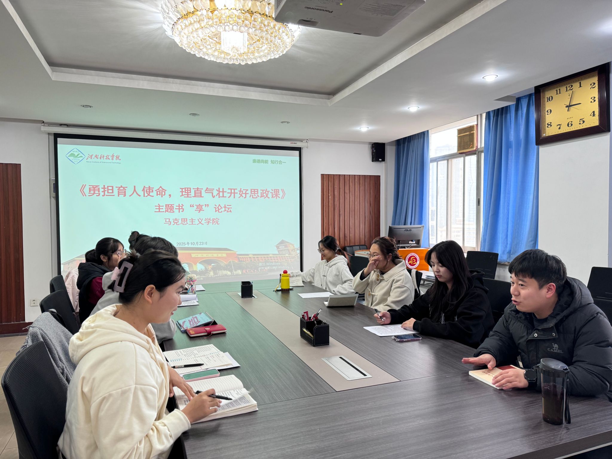10月23日下午,马克思主义学院2025级研究生在0号楼804会议室举办“勇担育人使命,理直气壮开好思政课”——《理直气壮开好思政课——把握新时代思政课建设规律》学习心得交流暨主题书“享”论坛。本期论坛由学院研究生导师靳志鹏博士担任特邀嘉宾,2025级全体全日制研究生参加论坛。