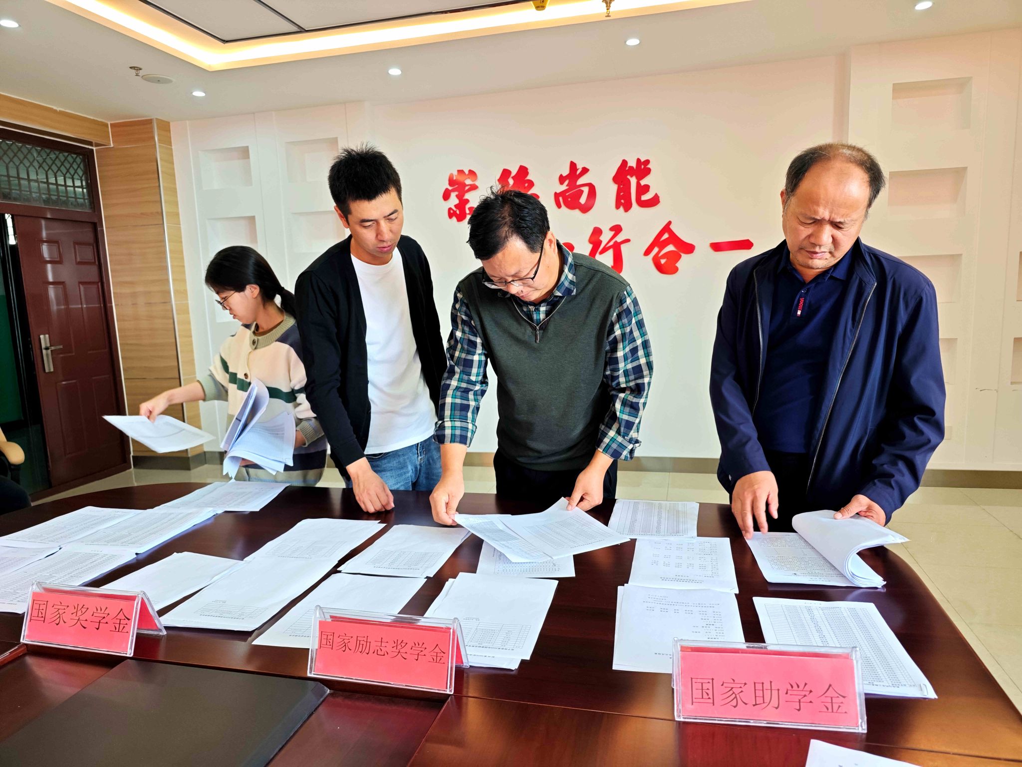 9月26日,高等职业技术学院在综合楼十楼第一会议室召开2025年国家奖助学金评审会。学院党委副书记张高峰出席会议,学生科、教务科、财务科等相关科室负责人,各系党支部书记、主任和负责资助的辅导员参加了评审会。会议由学生科科长丁文玉主持。