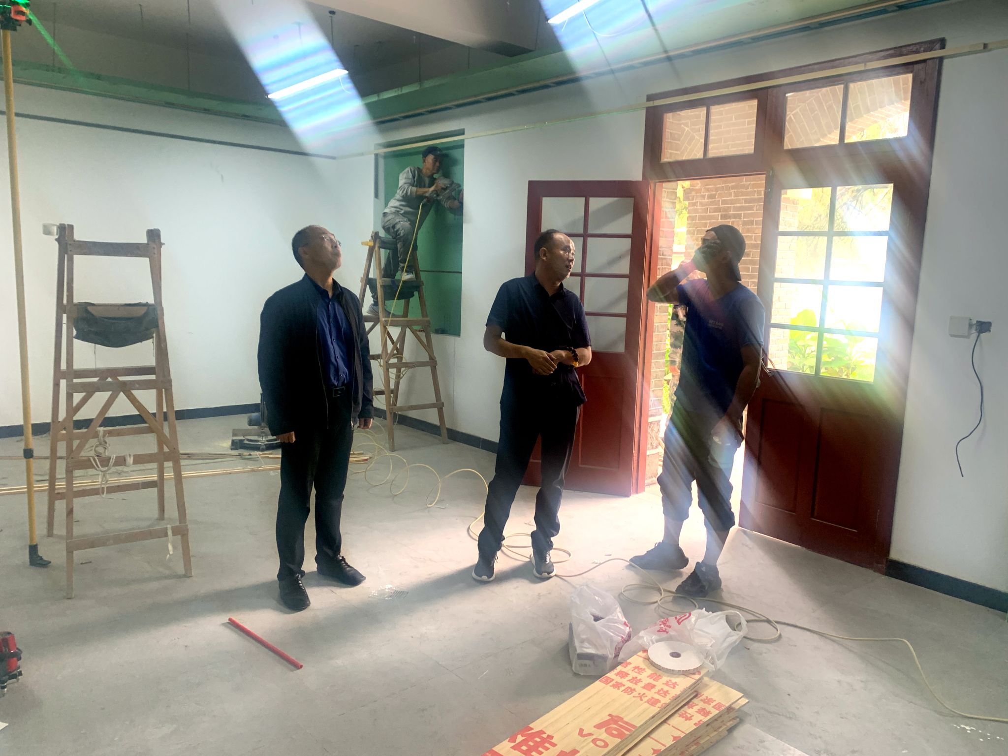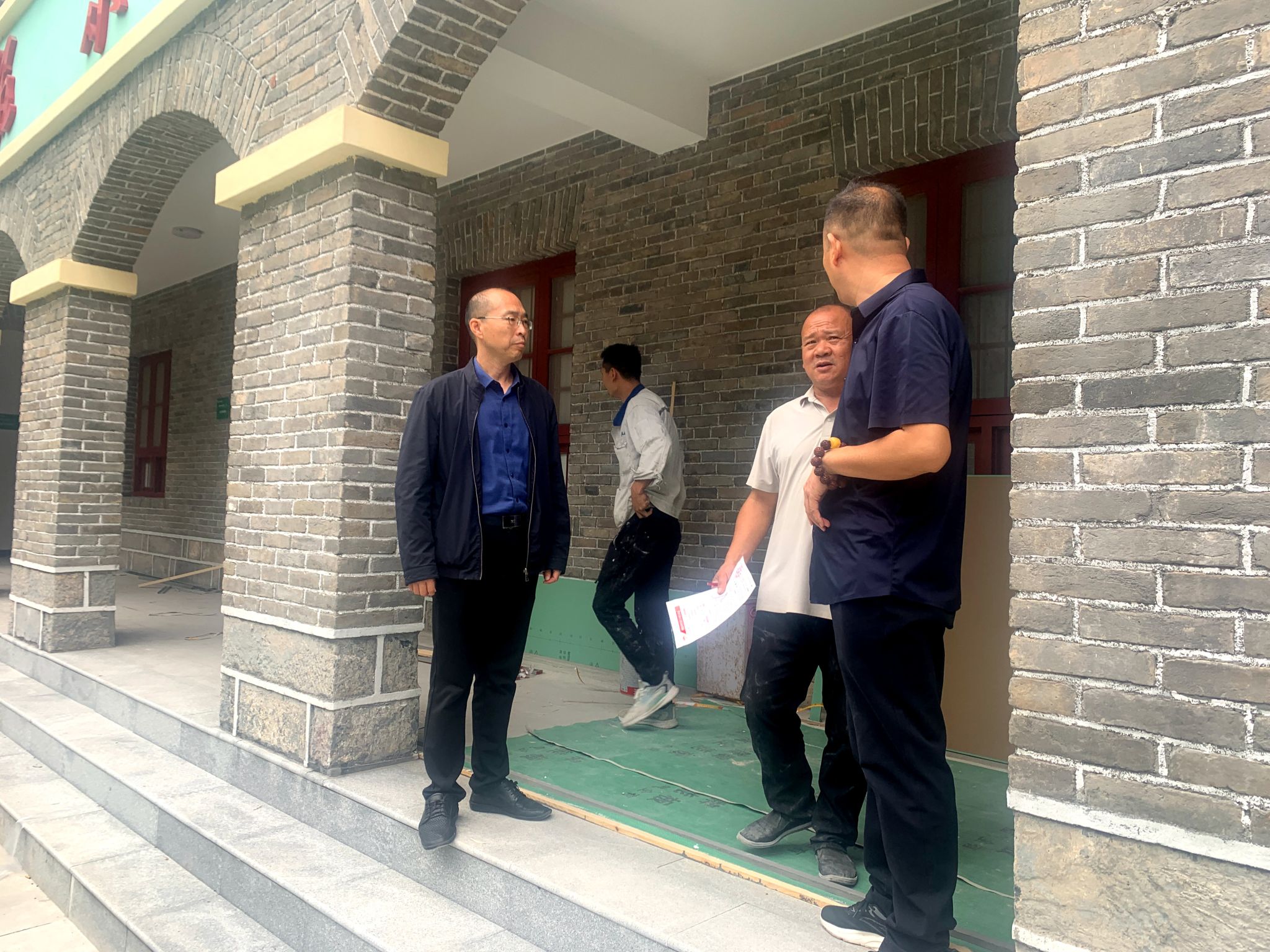 在工字楼,学院领导听取了施工负责人对工程进度的汇报后,表示,百农精神传承馆建设时间紧、任务重,在保证工期的前提下要确保工程质量和施工安全。随后,要求后勤服务中心在施工现场增加灭火器、水带等消防器材,做好安全保障。