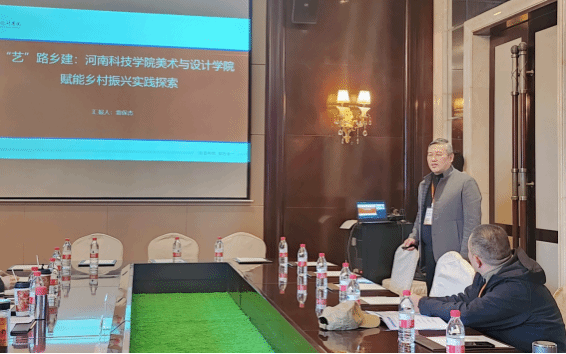 雷保杰院长受邀与公共艺术教研室主任杨楠楠及两名研究生参加会议,并做了《“艺”路乡见:河南科技学院美术与设计学院赋能乡村振兴发展实践探索》的主旨发言。