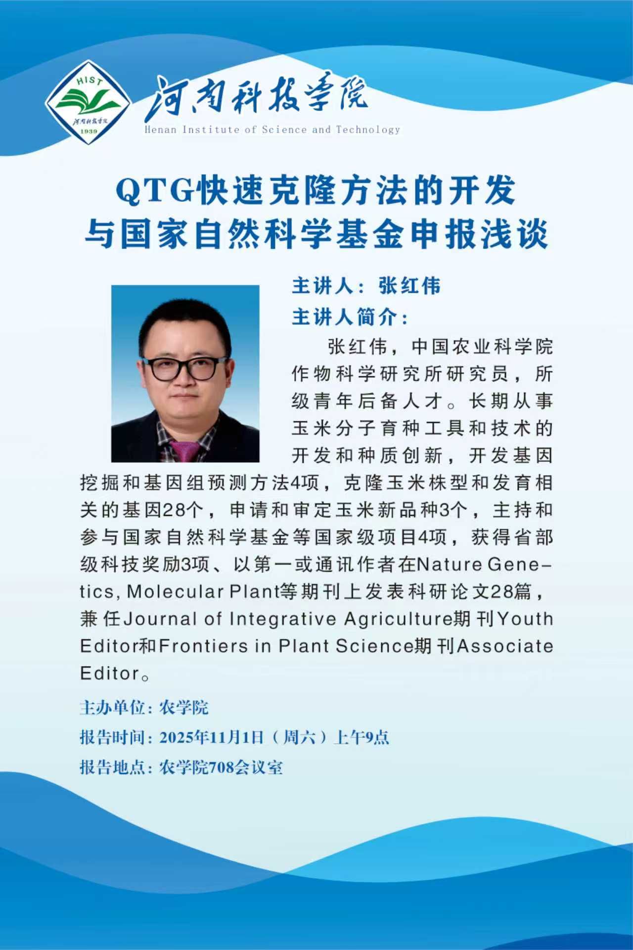 学术报告:QTG快速克隆方法的开发与国家自然科学基金申报浅谈