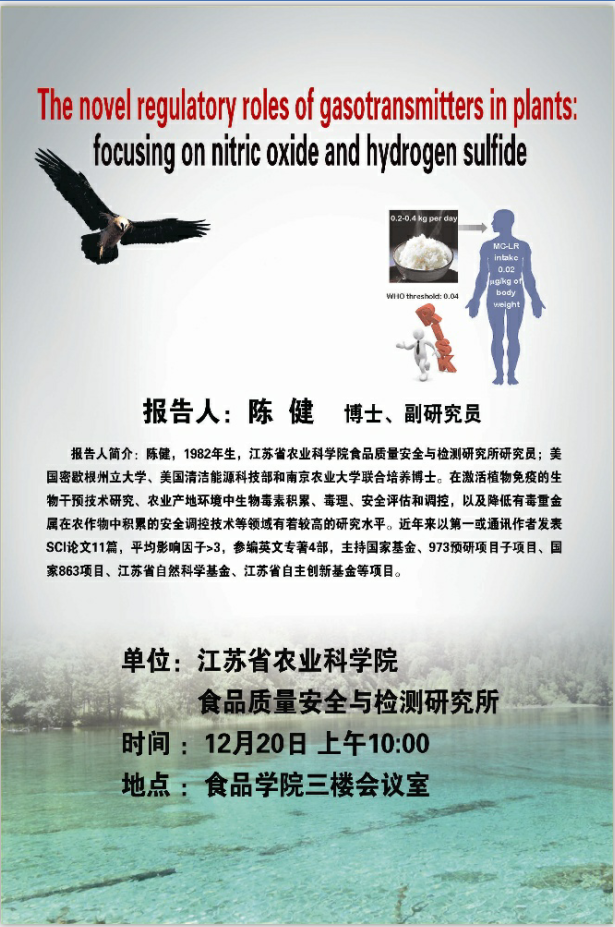 陈健,1982年生,江苏省农业科学院食品质量安全与检测研究所研究员;美国密歇根州立大学、美国清洁能源科技部和南京农业大学联合培养博士。在激活植物免疫的生物干预技术研究、农业产地环境中生物毒素积累、毒理、安全评估和调控,以及降低有毒重金属在农作物中积累的安全调控技术等领域有着较高的研究水平。近年来以第一或通讯作者发表SCI论文11篇,平均影响因子>3,参编英文专著4部,主持国家基金、973预研项目子项目、国家863项目、江苏省自然科学基金、江苏省自主创新基金等项目。