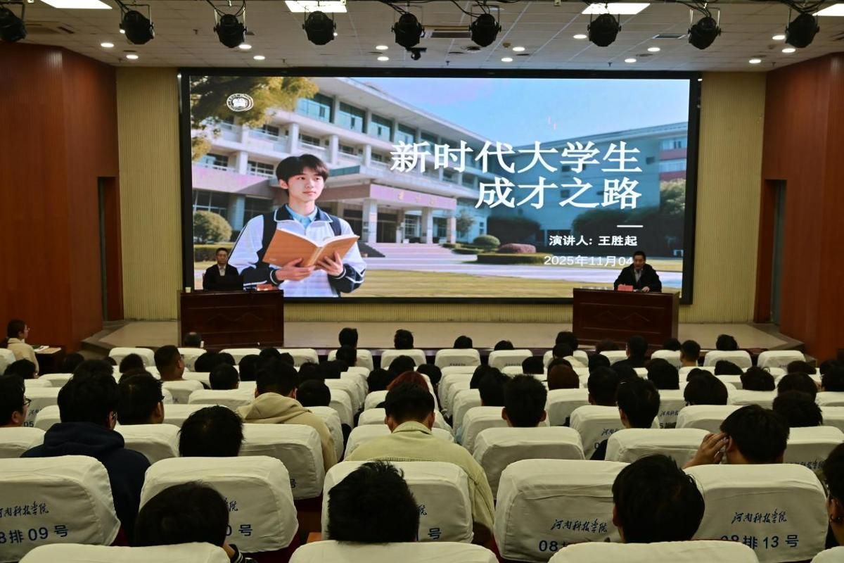 会议伊始,王胜起博士首先剖析了当下的时代方位,并明确指出,新时代呼唤的并非“精致的利己主义者”或“死记硬背的考试机器”,而是有理想、有担当的奋斗者,有本领、会创新的实干家。随后,王胜起博士围绕成长之核、行动路径和星辰大海三个方面展开系统性阐述,提出理想信念、实践能力、创新精神、核心价值观四大成才支柱,强调忠诚品格、文化自信、终身学习等关键素养,给出“惜时阅读、勇于表达、协作涵养”的具体行动路线,勉励机电学子主动对接国家十大战略、九大行业、六大产业,将个人奋斗融入时代洪流。