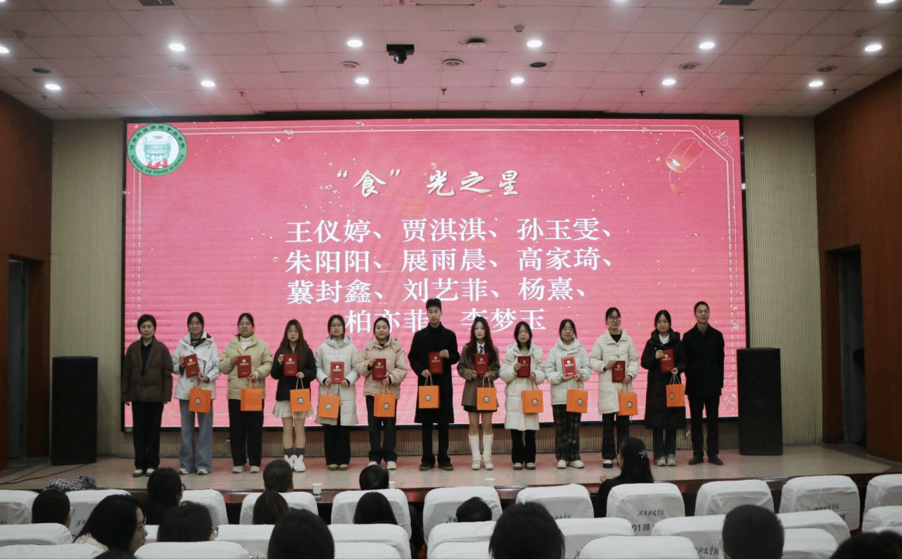 12月30日晚,食品学院2025年“食”代先锋表彰大会在图书馆一楼报告厅举行,学院党政领导、全体辅导员及学生代表参会。