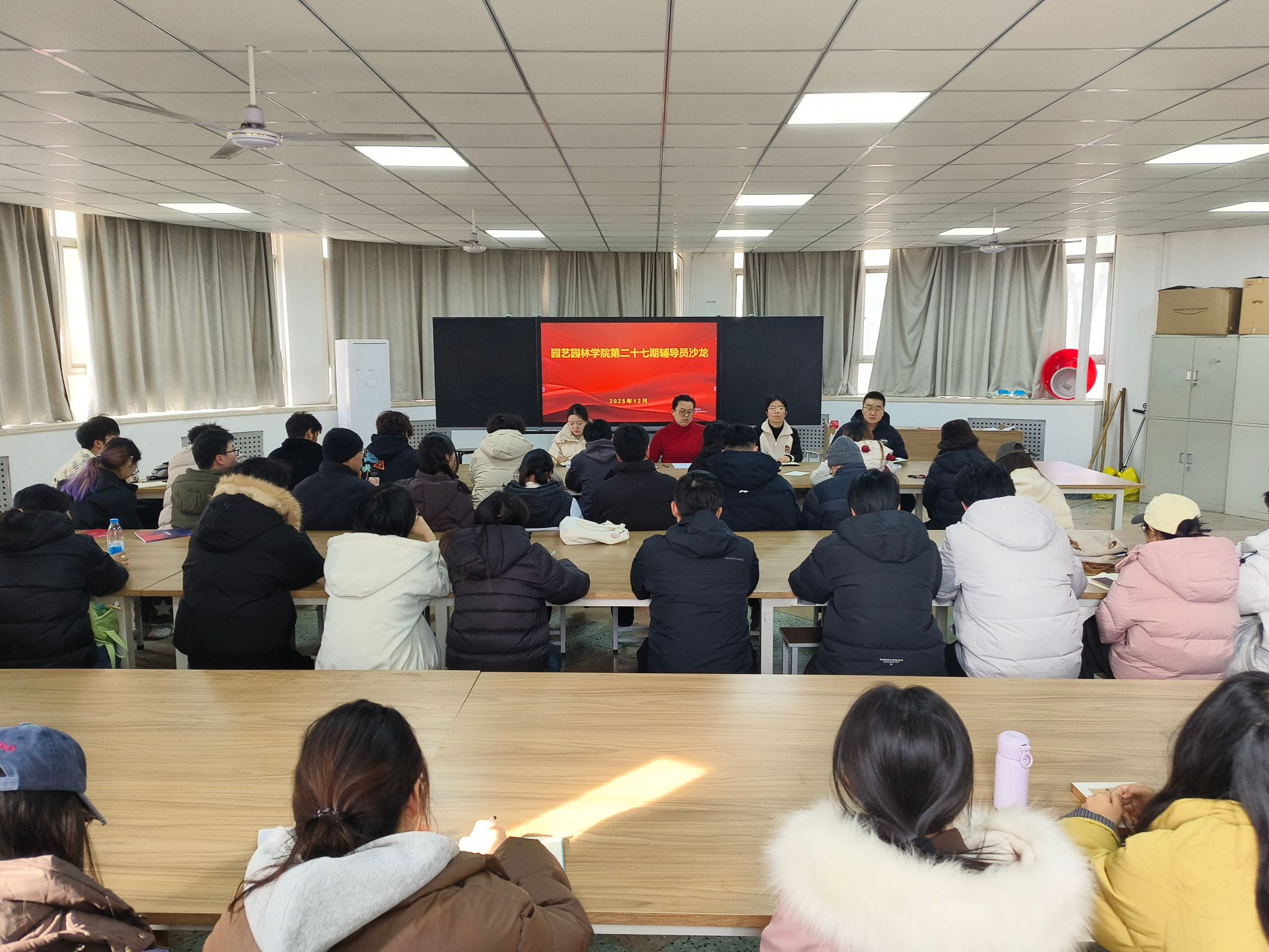 12月24日中午,园艺园林学院在实验楼B106举办第二十七期辅导员沙龙。学院全体辅导员及学生骨干代表参加会议。沙龙由正科级辅导员曹云主持。