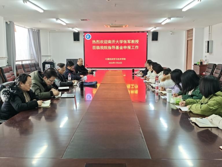 1月26日上午,计算机科学与技术学院邀请南开大学张军教授来院指导2026年度国家自然科学基金项目申报工作。会议由学院院长高国红主持,全体国家自然科学基金项目申报教师参加了会议。