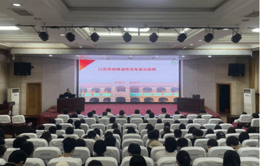 翟居怀从懂精神、知内涵,谈践行、明方向,学榜样、见行动,守初心、勇前行四个方面,详细梳理百农精神的起源、根基、深刻剖析百农精神内涵与时代价值,号召大家以实际行动践行百农精神,扎根沃土,勤学苦练,筑牢思想根基,锤炼政治品格,强化责任担当。
