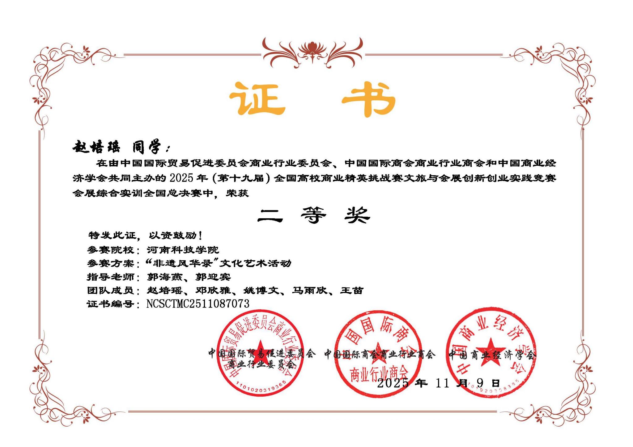 由中国贸促会商业行业委员会、中国国际商会商业行业商会和中国商业经济学会联合主办的2026年(新加坡)国际商务会展策划大赛中国地区选拔赛暨第十九届全国高校商业精英挑战赛文旅与会展创新创业实践竞赛总决赛于近期成功举办。