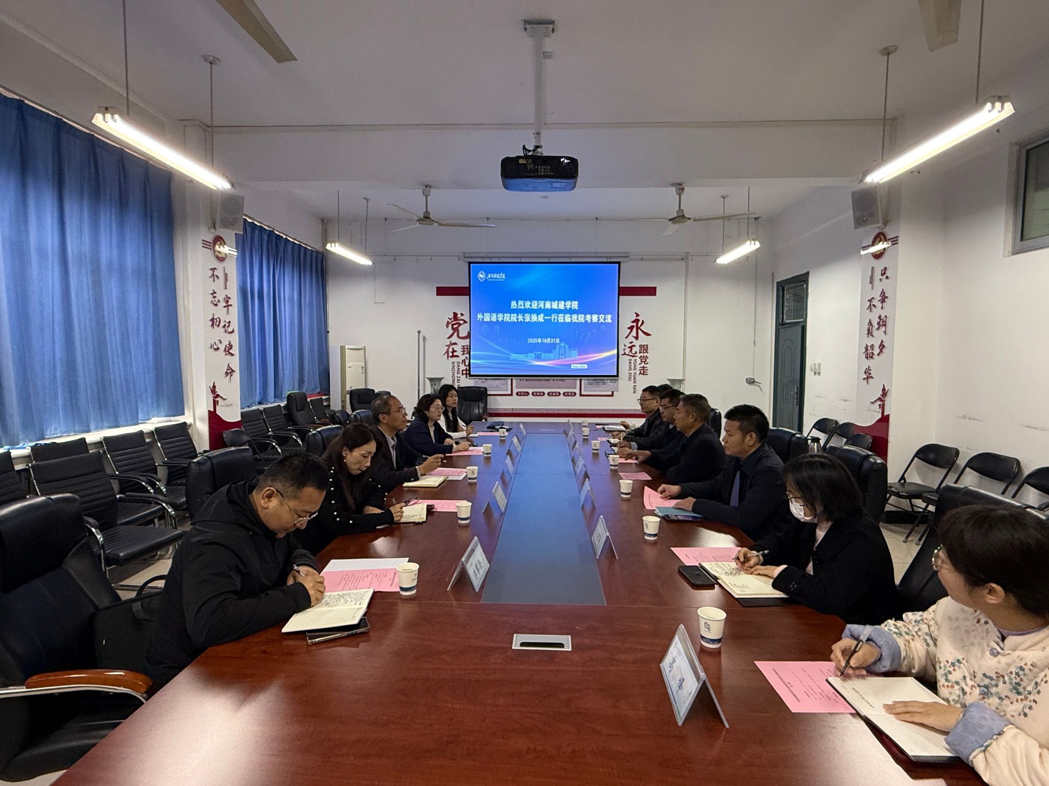 10月31日,河南城建学院外国语学院院长张换成一行5人到访我院考察交流。双方在7211会议室举行了交流座谈会,外国语学院院长李会民,副院长万文龙、程建锋、张志超及相关科室负责人参加了调研交流。