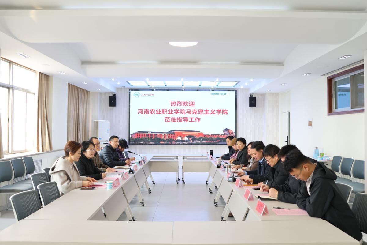 12月11日上午,河南农业职业学院马克思主义学院院长谢玉明、党支部书记陈锐一行5人来我院调研交流。学院院长王冰蔚、党委副书记刘中元、副院长张雪霞及相关教研室负责人参加座谈。会议由刘中元主持。