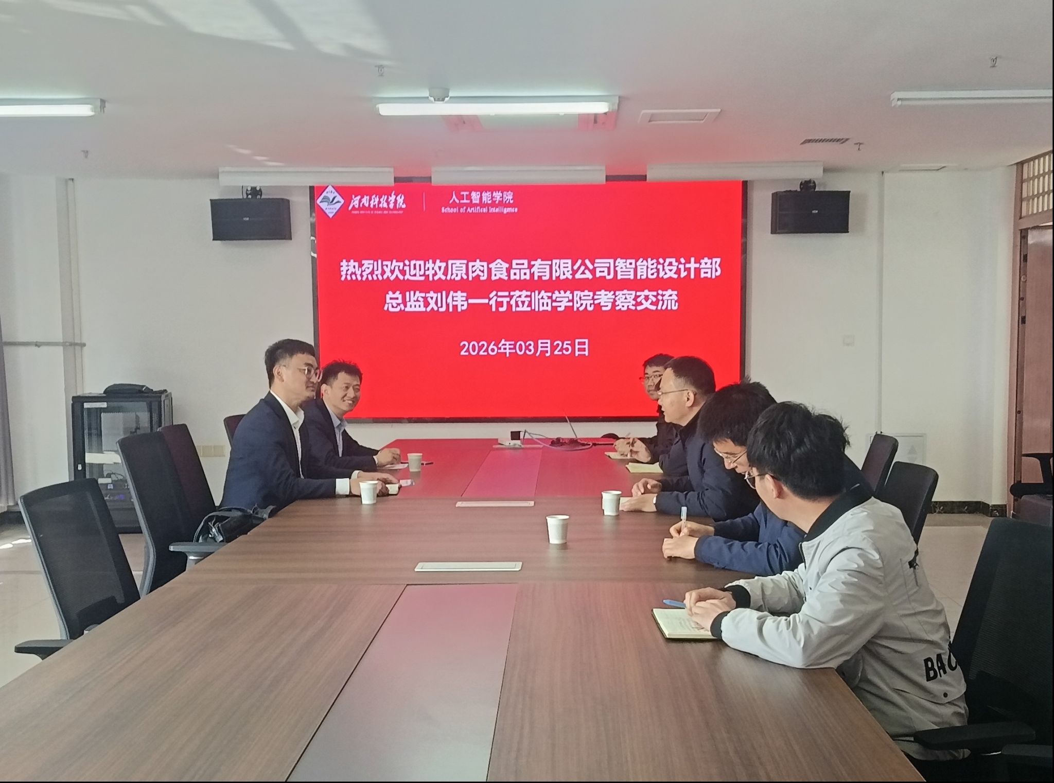 3月25日,牧原肉食品有限公司智能设计部总监刘伟一行到学院开展调研交流,人工智能学院院长蔡磊、副院长徐涛及相关师生代表参加了交流座谈。
