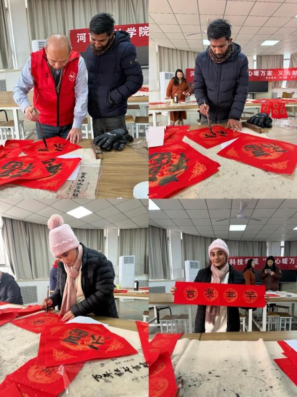1月21日,国际教育学院组织寒假留校国际学生,参与由校工会主办、校书画协会及美术与设计学院承办的“爱心暖万家、义务献春联”活动。
