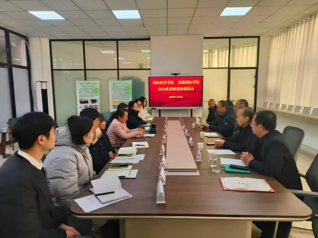 1月27日,苏梅国际学院在博闻楼500会议室召开宋合成老师荣休座谈会。学院党政班子成员和全体教职工参加会议,植物保护与环境学院、高等职业技术学院、成果转化与合作办公室等单位领导应邀参加会议。会议由学院党委副书记刘凤主持。