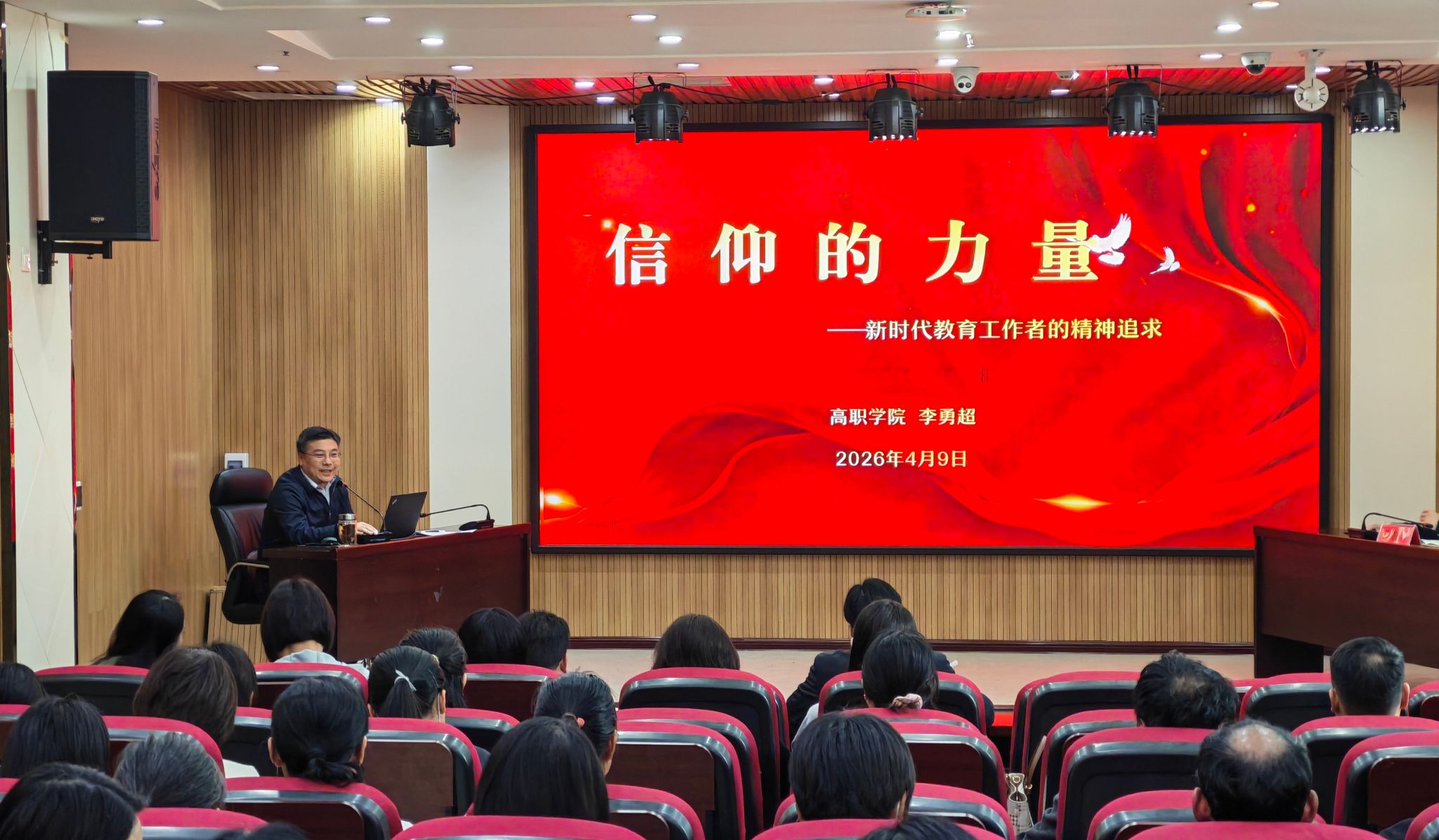 为深入学习贯彻习近平总书记关于树立和践行正确政绩观的重要论述精神,4月9日下午,高等职业技术学院院长李勇超以《信仰的力量——新时代教育工作者的精神追求》为题作了一场专题报告。学院党委书记孙敬坤主持报告会。