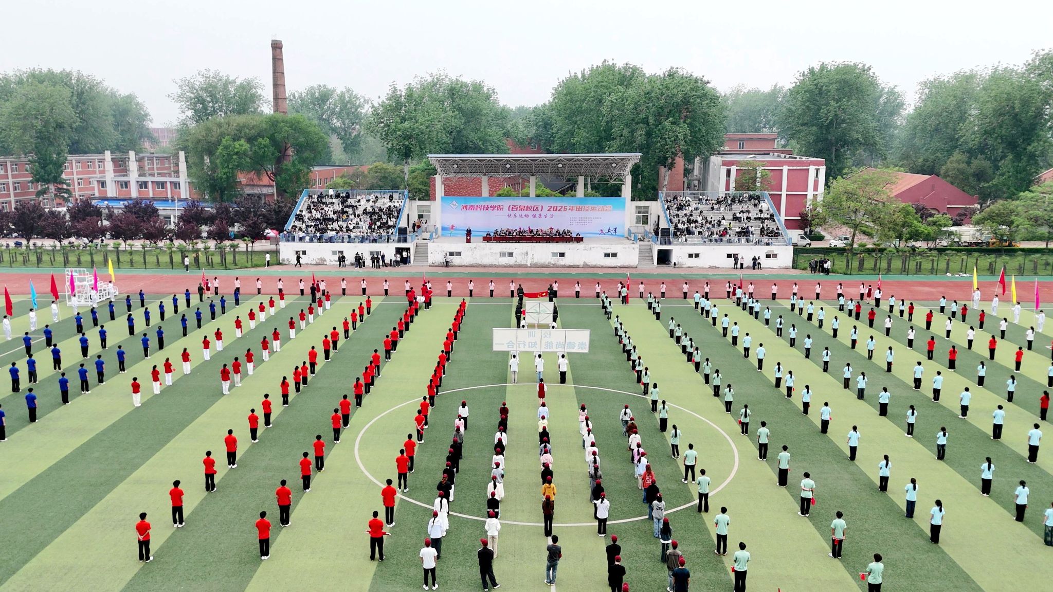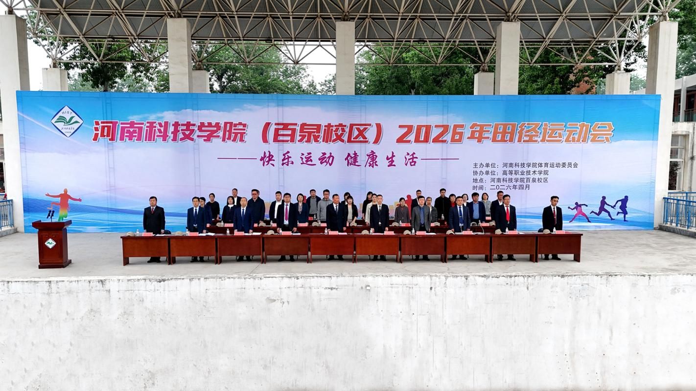 4月16日上午,河南科技学院百泉校区2026年田径运动会开幕。副校长乐玉忠出席开幕式,校长办公室、教务处、学生处相关负责人、高等职业技术学院全体班子成员、科级干部、裁判员、运动员代表及师生代表参加了开幕式。开幕式由高等职业技术学院院长李勇超主持。