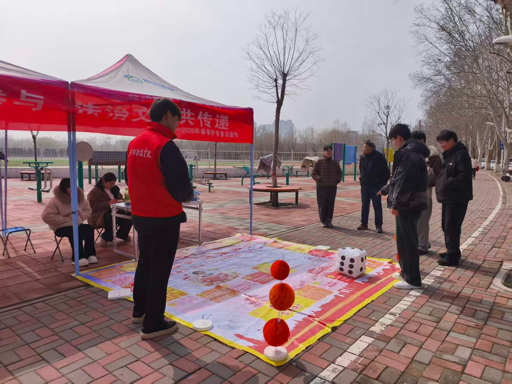 在趣味普法互动区,法治飞行棋、好运乒乓球、法治猜谜等游戏依次开展。同学们在投掷骰子、趣味答题、竞猜谜题的过程中,学习宪法、民法典等实用法律知识。活动现场欢声笑语不断,真正实现“寓教于乐、寓学于趣”。