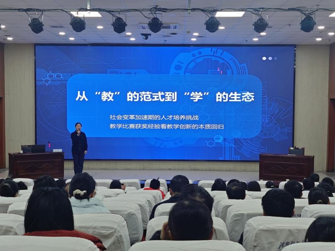 为深化教师教学改革,提升教师智慧教学能力,12月9日下午,教务处特邀河南财经政法大学教师发展中心副主任戚笑雨博士,在新图书馆一楼学术报告厅开展“‘以学生为中心’的智慧课程教学设计——从‘教’的范式到‘学’的生态”专题讲座。本次活动由教务处(教师教学发展中心)主办,教务处副处长苏喜庆主持,全校各院系教师代表150余人参与了学习交流。