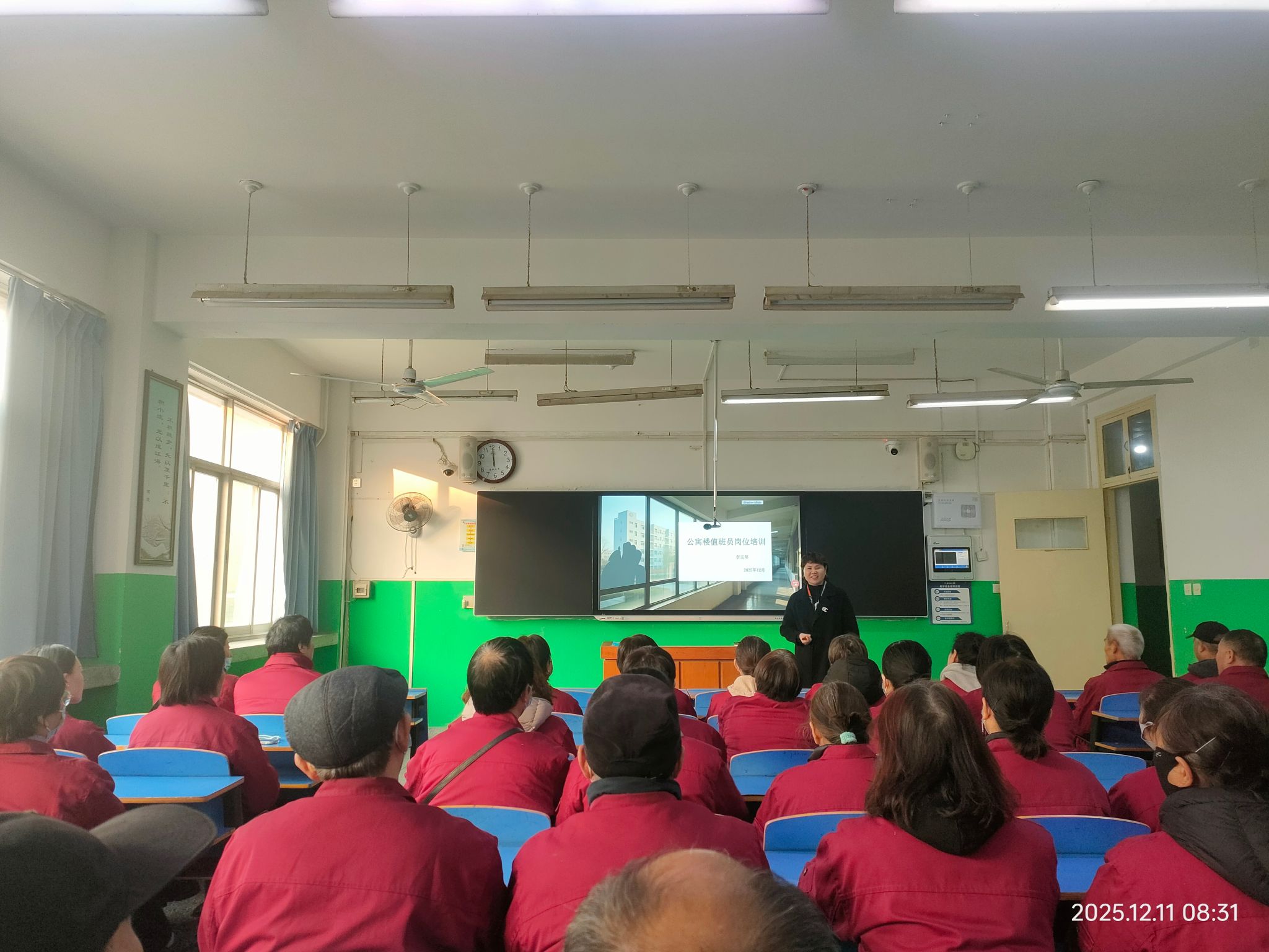 为进一步规范宿教值班员服务标准、强化责任意识、提升服务质量,12月11日至12日,后勤服务中心开展了宿教值班员业务能力专项培训,后勤服务中心相关人员、物业公司全体宿教值班员参加了培训。