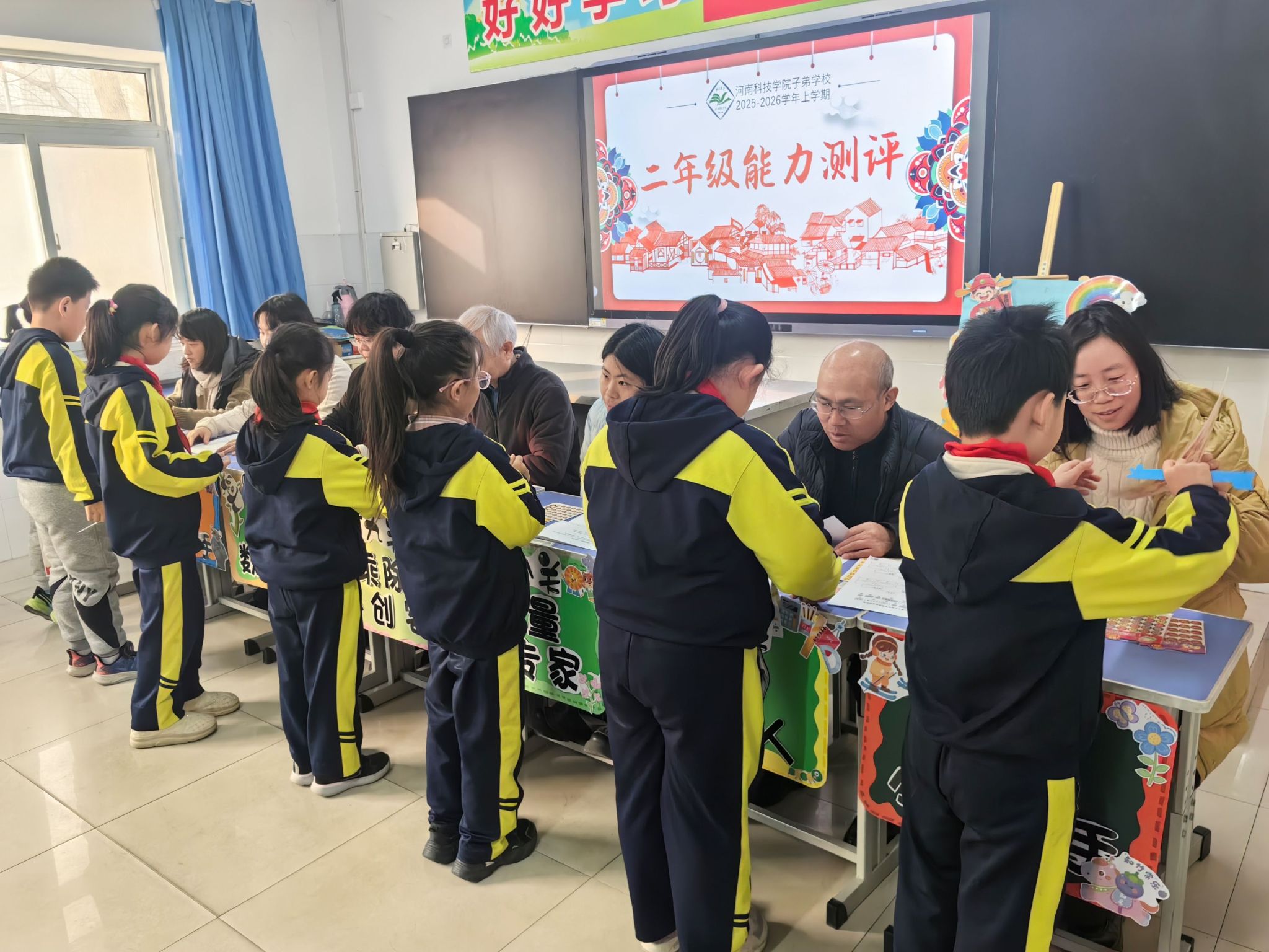 为深入贯彻落实“双减”政策要求,创新学生综合素质评价方式,促进学生全面发展、个性成长,子弟学校于1月27日开展以“趣味无止境,乐考促成长”为主题的一、二年级绿色测评活动。活动以游戏化、情境化的闯关形式开展,让低年级学生在轻松愉悦的氛围中展示知识掌握成果,收获学习乐趣与成长成就感。