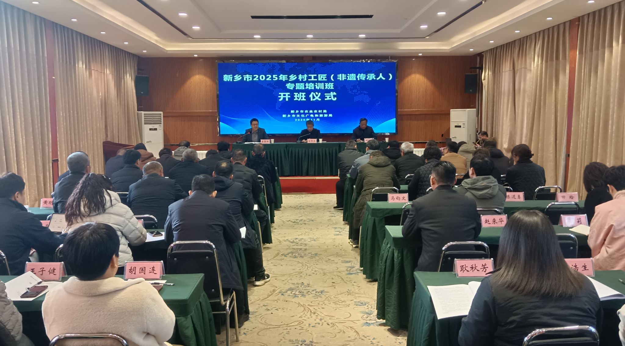 11月21日,由新乡市农业农村局和新乡市文化广电和旅游局联合主办、河南科技学院教育培训中心承办的2025年乡村工匠(非遗传承人)专题培训在辉县市委党校顺利开班。全市各县(市、区)45名乡村工匠与非遗传承人参加了此次培训。