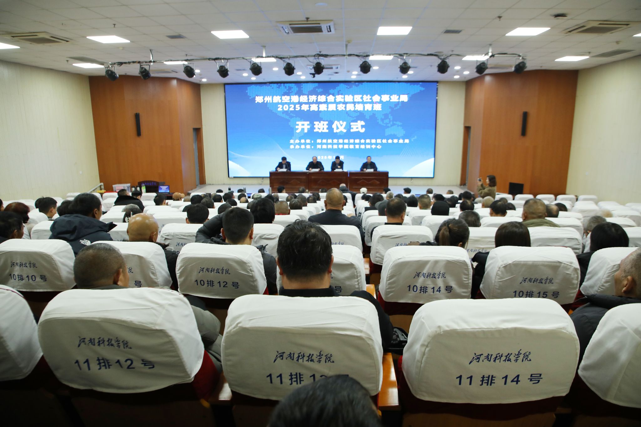 12月17日下午,由郑州航空港经济综合实验区社会事业局主办、河南科技学院承办的2025年高素质农民培育班开班仪式,在图书馆一楼报告厅举行。社会事业局三级调研员冯明霞、农业农村科科长左伟鑫、继续教育学院党总支书记郭东升、教育培训中心副主任姚建国以及来自各办事处和乡镇的种粮大户、家庭农场经营者、农民合作社成员、种植能手及返乡创业人员等190余名参训学员,共同出席了此次开班仪式。仪式由姚建国主持。