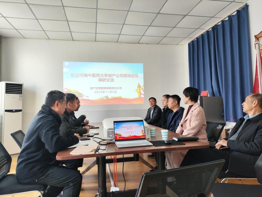 11月5日,河南中医药大学资产经营管理公司总经理徐华明及审计处、校友办等一行5人莅临我校资产公司进行调研交流。资产公司党政领导以及河南科院印象文化传播有限公司负责人参加调研交流。